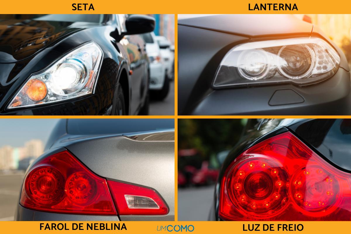 A seta é o mais esquecido, mas é muito mais importante do que parece. Ao contrário das demais luzes, exceto as luzes de freio, que são vermelhas (como as traseiras) e acendem automaticamente, são luzes laranja.